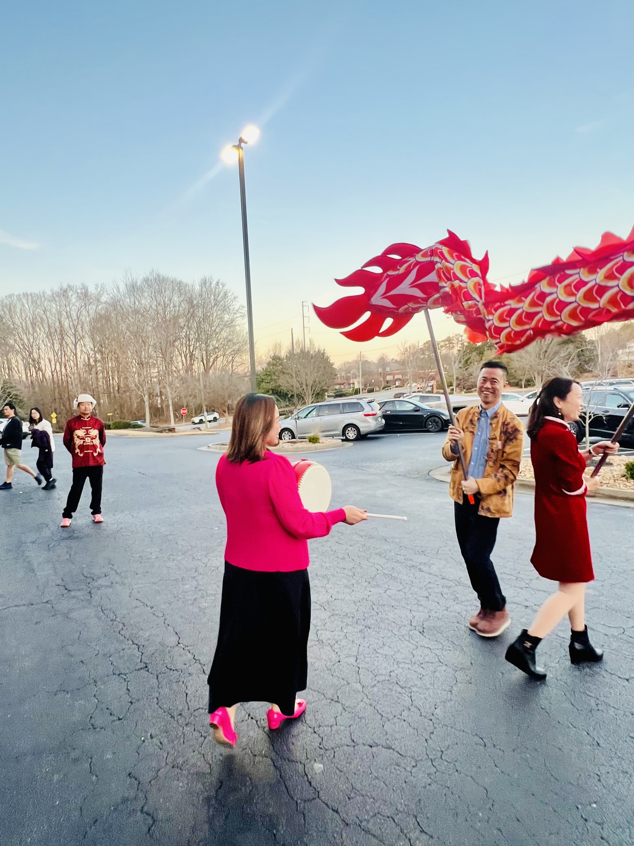锣鼓喧天,舞龙腾跃,歌舞美食齐聚,年味十足。华人经纪联盟成员活力满满成为晚会中最亮眼的团体之一。